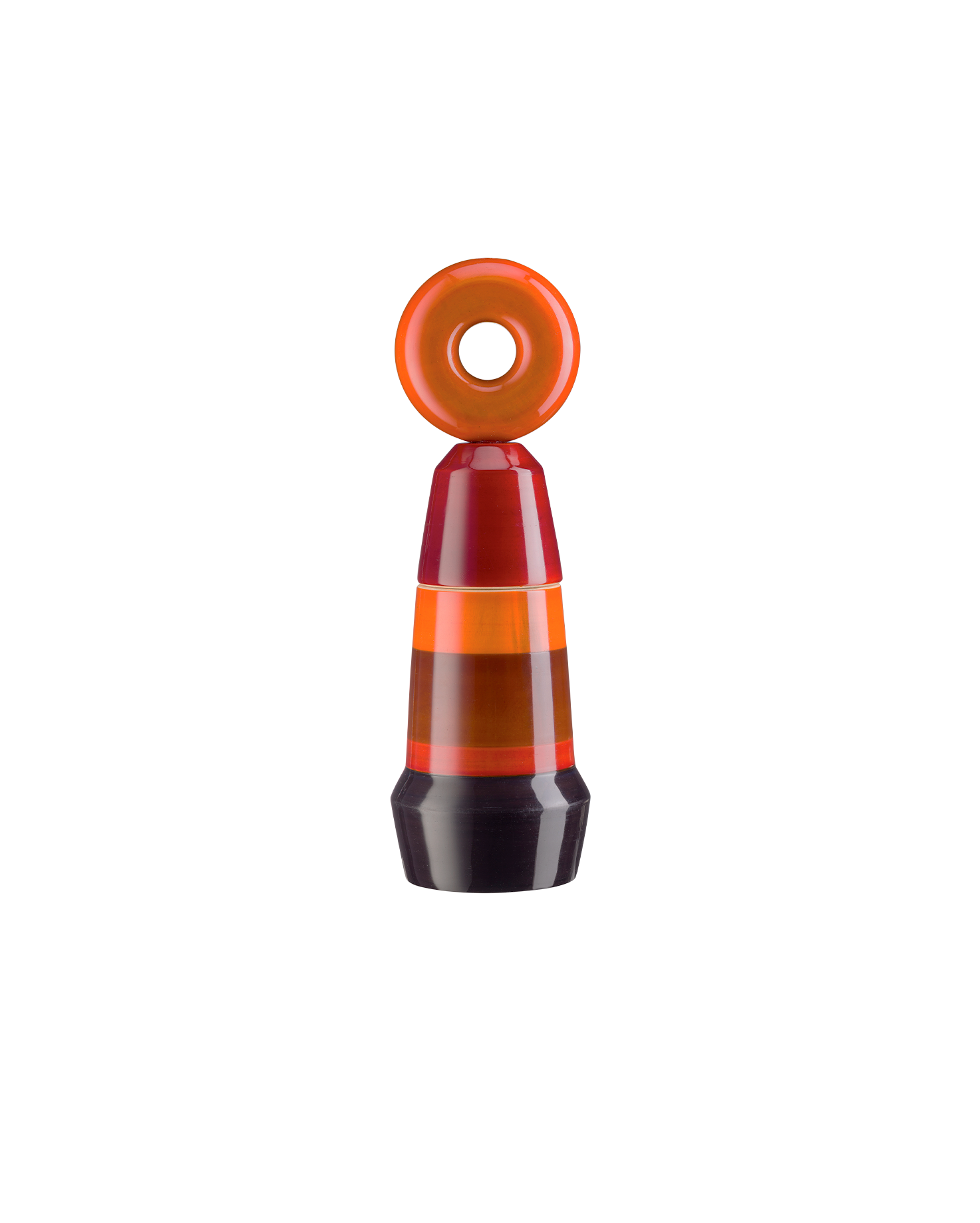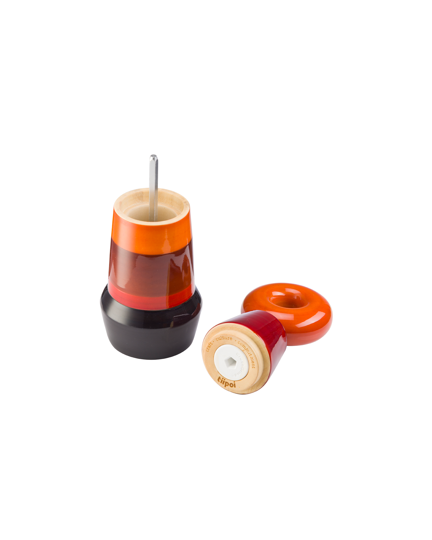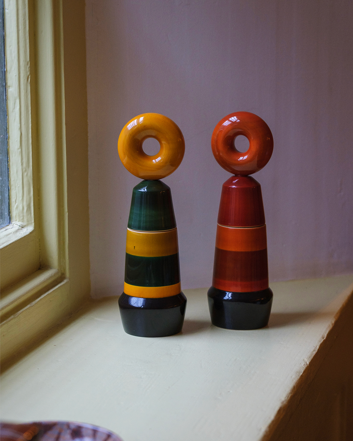 Crafted in Channapatna, India, using traditional wood lathe techniques passed down from the 18th century, the Tipu Dilawar Mill celebrates fine artisanship with a contemporary flair. Designed in collaboration with London-based artist and designer Moe Redish, the piece draws inspiration from the town’s famous handcrafted toys known for their rounded forms and vibrant lacquer finishes.
